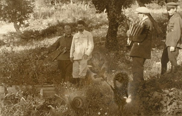 И.В.Сталин, Л.П.Берия, тов. Ёжик, тов. Улитка и другие ответственные лица с инспекцией по пути к ЖК «Курортный», 1933 год: