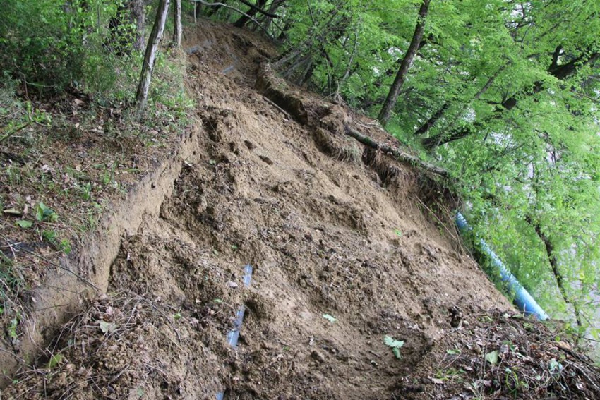 Трубы прокладывает, предположительно, ЗАО «Универсал», который намерен построить элитный коттеджный поселок на рекреационных землях на смежном участке в 11 га. Заявления в полицию, в Хостинскую и Природоохранную поданы неделю назад. Прошел сильный дождь и случилось то, что должно было случиться. На центральный водовод по Новороссийскому шоссе посыпались деревья и кусками отваливается грунт на глазах. Может произойти повреждение водовода.