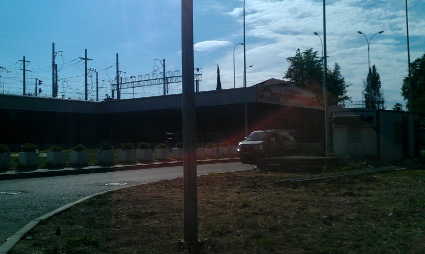 На подъездах к Ротонде привлекла внимание вывеска на мрачных досмотровых павильонах РЖД, возведенных здесь к олимпиаде, причем в непотребных количествах. На маленьком полустаночке их тогда установили столько же, сколько и перед сочинским вокзалом. Естественно, использовался лишь один из них, изредка, остальное – ,, шоб було''.Место у моря, знаете, сгодится завсегда. .