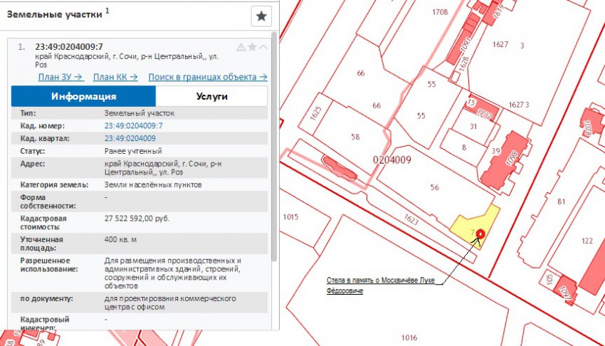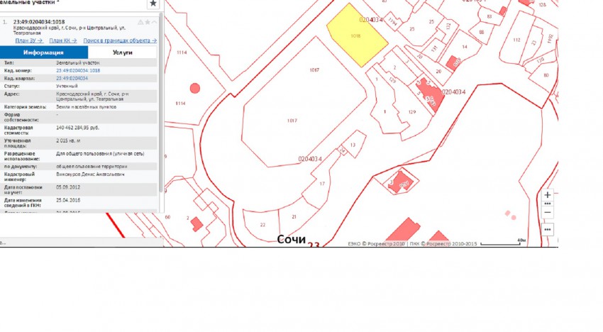Зелёная зона у Зимнего театра. Участок с кадастровым номером 23:49:0204034:22 — назначение участка по публичной кадастровой карте для иных видов использования характерных для населённых пунктов…