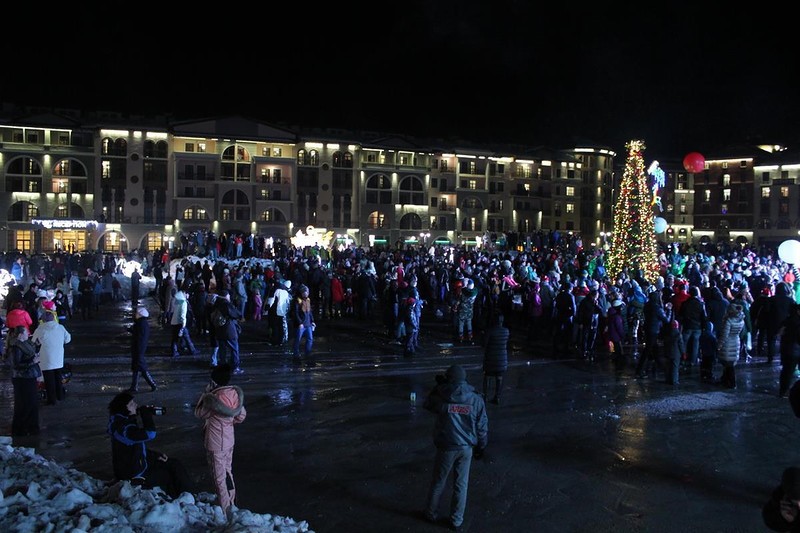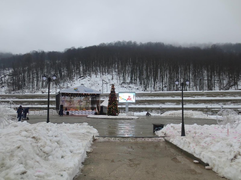 В половину первого люди постепенно начинают разбредаться — кто обратно в ресторан, кто в номер, кто погулять, как мы. И внезапно начинаешь понимать, что все, кто собрался на площади перед сценой — это гости курорта в почти полном составе, плюс инструктора, охрана и аниматоры. Возможно, кто-то приехал сюда с побережья, кто-то убыл в Розу, но так или иначе, это не 8 тысяч, которые встретили Новый год в Сочи-Парке (если ему можно верить, конечно).
