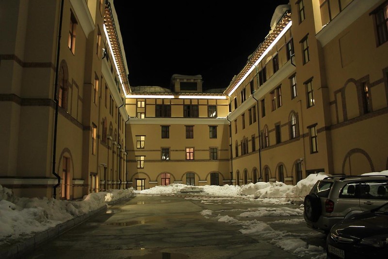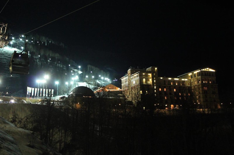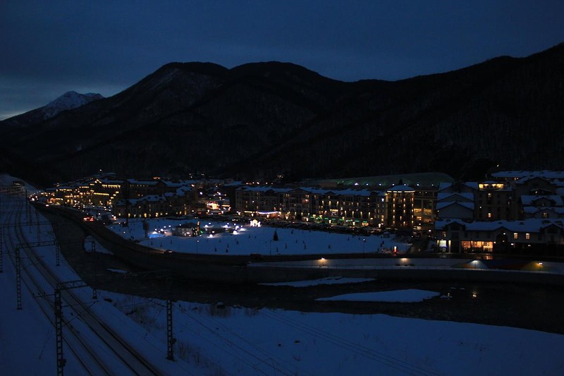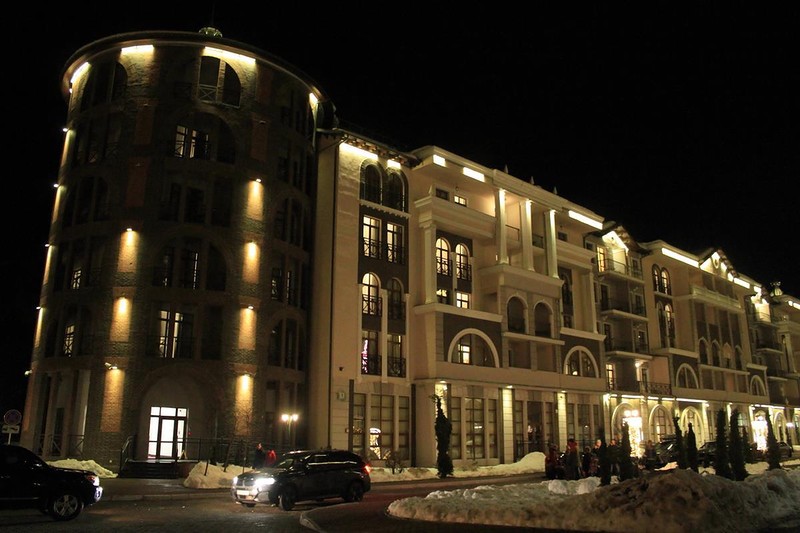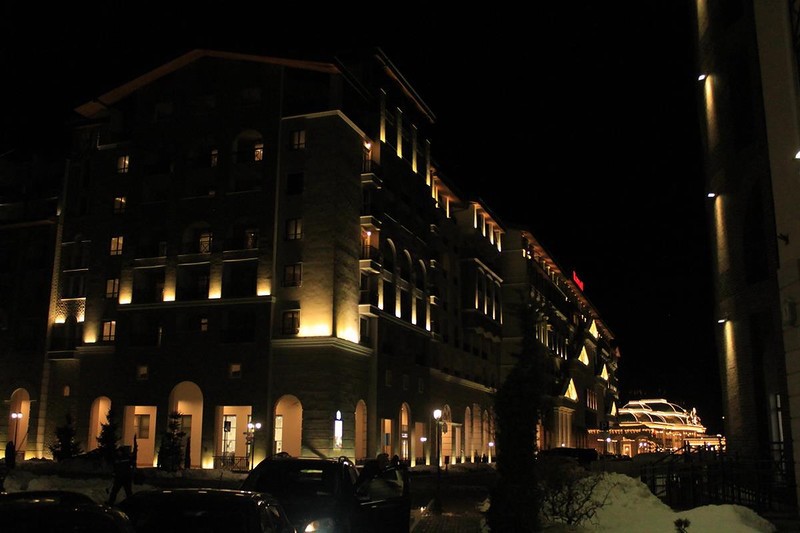 Претерпев муки с заселением (какой нехороший человек придумал всех жителей Горки Города размещать через один ресепшн?), мы добрались до своих апартаментов, заселились, пришли в себя и отправились совершать рекогносцировку местности, примерно с семи до девяти вечера. Гуляем мы гуляем, но как-то всё странно: фонари горят, подсветка на зданиях сияет и переливается, а вот окна в большинстве гостиниц тёмные. Кто ходил по спальному району вечером, тот видел, насколько светло от многочисленных жилых домов, безо всяких фонарей и подсветки. Сразу ясно, что тут живут люди, очень много людей — у кого на кухне свет, у кого в комнате, или сразу везде. Но в Горках было по-другому…