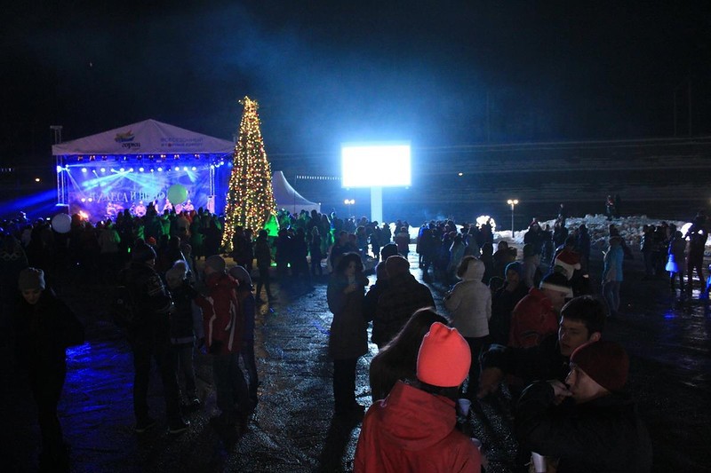 И вот они, заветные первые минуты Нового года. Мы специально спустились вниз со своих высот, чтобы на площади перед восьмым апартом вместе со всеми отпраздновать наступление 2017-го. Так вроде стоишь на куче слежавшегося снега, фоткаешь салюты, народ, здания, смотришь — ну, много же людей пришло!