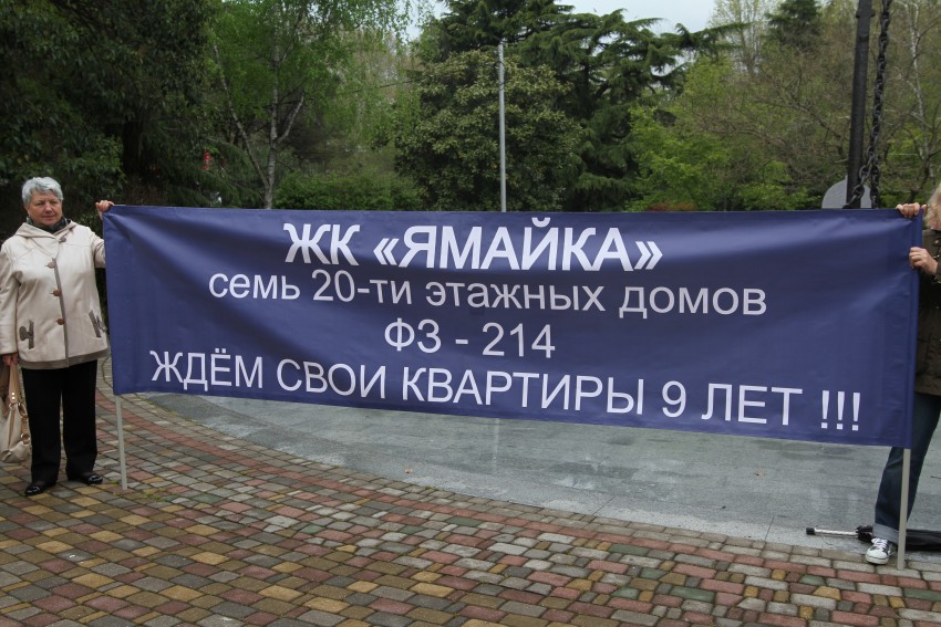Мы, доверившись государству, приобрели квартиры в соответствии с 214 ФЗ «Об участии в долевом строительстве многоквартирных домов». Несмотря на разрекламированную в то время безупречность и надёжность выбранного нами застройщика, отмеченную в 2008 г. главой г. Сочи дипломом победителя городского конкурса «Лучшее предприятие потребительской сферы», несмотря на регистрацию договоров долевого участия в УФРС г. Сочи, мы фактически оказались обворованными и без квартир.