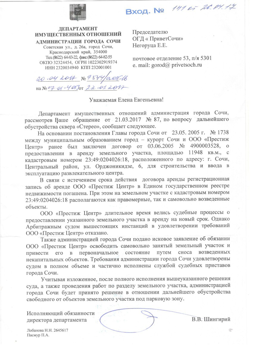 Теперь ответ значительно определённее. Вообще, надо сказать, что из всех подразделений администрации города чётко, по существу и во время отвечает только Департамент имущественных отношений, надо отдать им должное…