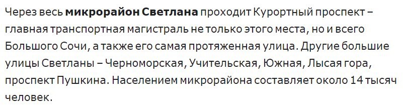 В микрорайоне «Светлана» Хостинского района проживает около 50 тысяч человек. Население микрорайона постоянно увеличивается в связи с расстраивающимся посёлком Соболевка и всей Лысой горы.