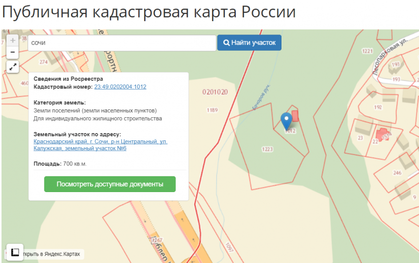 Адрес: Краснодарский край, г. Сочи, Центральный р-н, ул. Калужская, земельный участок №6