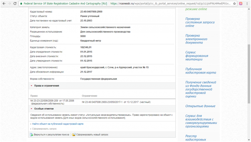 И, как следует из данных Публичной кадастровой карты, участок от 17.05.2006 — в федеральной собственности, а от 13.12.2017 — частный