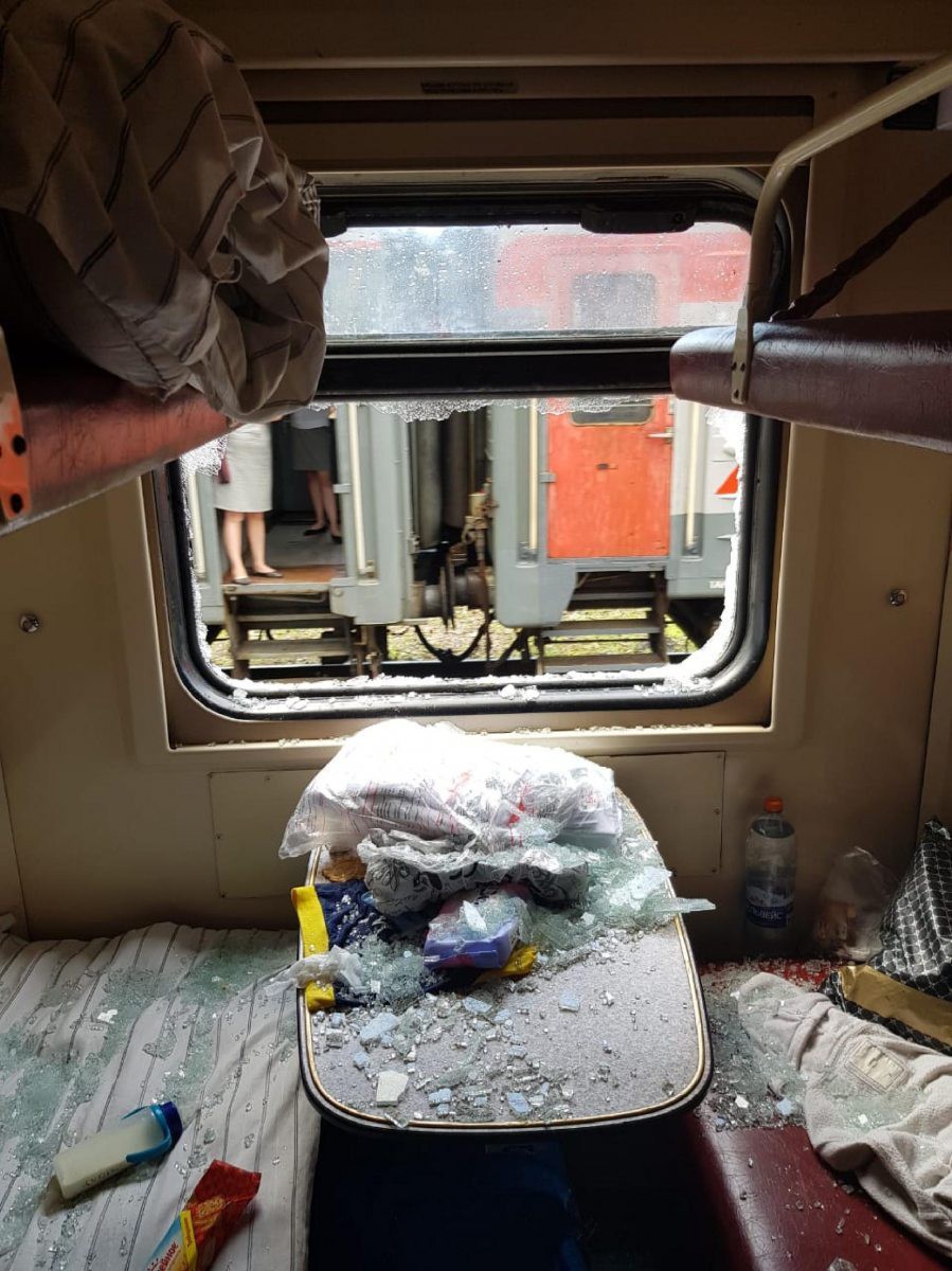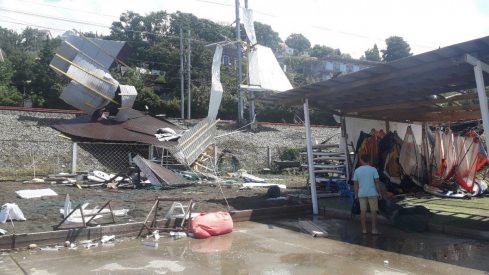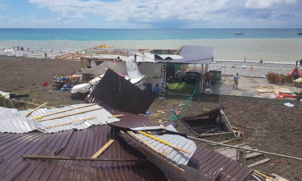 Из-за непогоды сорвало металлоконструкцию пляжного кафе на контактную группу железнодорожных путей. Посторонним предметом было повреждено окно пассажирского поезда №116 Адлер – Санкт-Петербург. Легкие повреждения, царапины, получил один пассажир. ОАО «РЖД» к концу дня восстановило движение задержанных поездов по графику. К ликвидации последствий привлечены силы и средства РСЧС в количестве 38 человек личного состава и 11 единиц техники, от МЧС России шесть человек и две единицы техники.