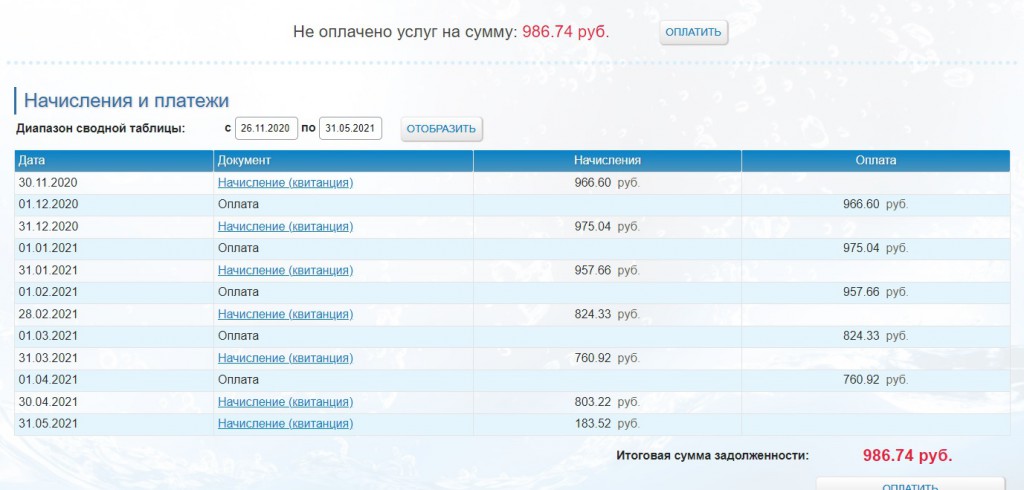 По согласованию с сотрудниками водоканала, я оплатил через ГорИВЦ квитанцию, с условием, что до конца мая все встанет на свои рельсы.