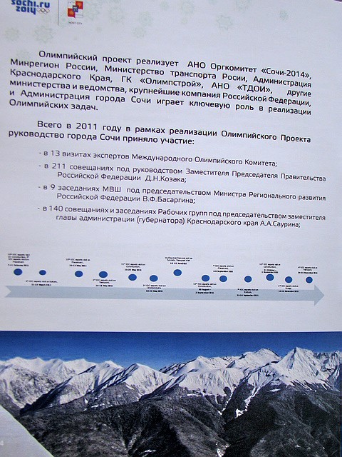 В брошюре почему-то именно это олимпийское наклонение«Еще один шаг на Олимпийскую Вершину Сочи 2014», «Администрация города Сочи играет ключевую роль в реализации Олимпийских задач», так жестко и справедливо отмеченное Путиным как недопустимое для местного чиновничества.