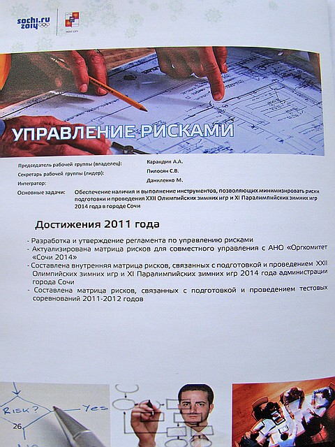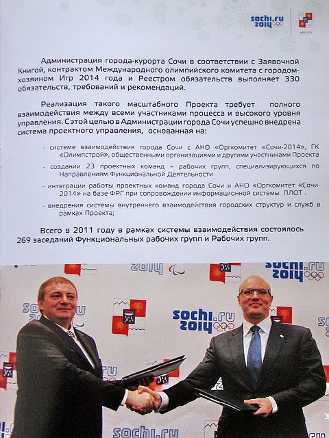 Он работает в краевом «олимпийском» департаменте, а брошюра — отчет Администрации Сочи о проделанной ею