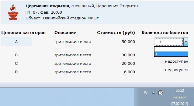 Вот и наступил долгожданный день — 7 февраля 2013. Ровно год до Олимпиады. Именно сегодня начинается продажа билетов на игры.