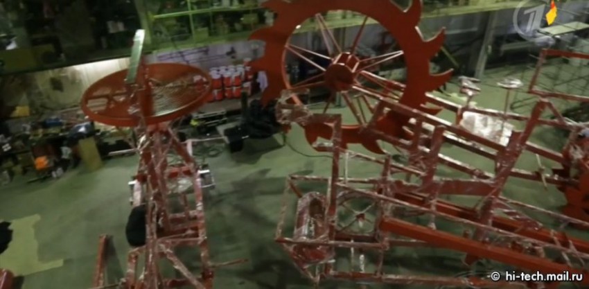 Пожалуй, одной из наиболее технически сложных декораций стала огромная тройка лошадей. Длина составила 23 м, высота 20 м, вес 9 т. Тройка была изготовлена в Швеции, причём из-за её огромных размеров и необходимости обеспечить секретность, сборка проводилась на подземной военной базе.