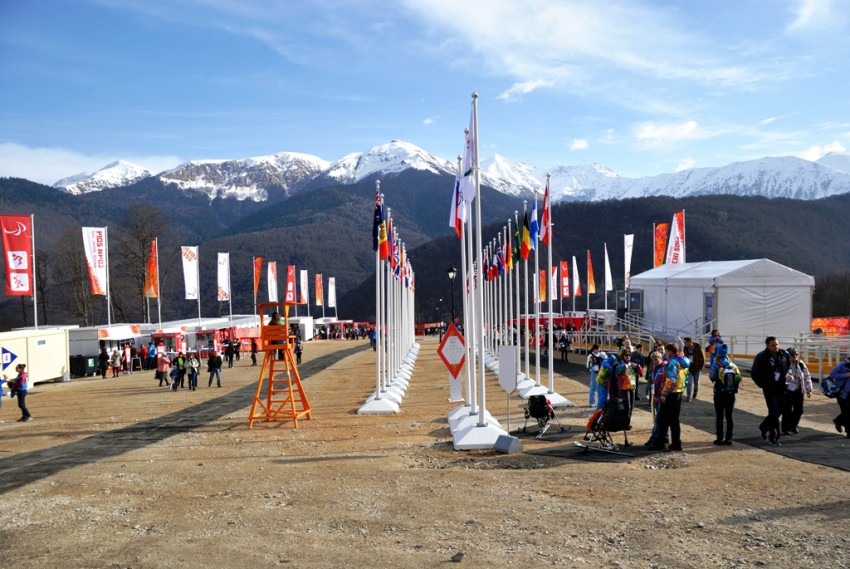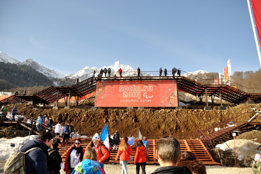 Спортсмены действительно молодцы, выступали слабовидящие, на ногах и сидячие, причем развивали скорость до 130 километров в час. Много спортсменов падало, но склон там действительно крутой, картинка этого не передает, но я думаю с него не каждый здоровый сможет спуститься. Американского спортсмена даже эвакуировали на вертолете. С трибун виден только финиш спортсменов, все остальное смориться по огромному экрану, а так как многие даже до финиша не добрались, то основное время там тупо просиживаеш штаны, хотя атмосфера конечно очень хорошая.