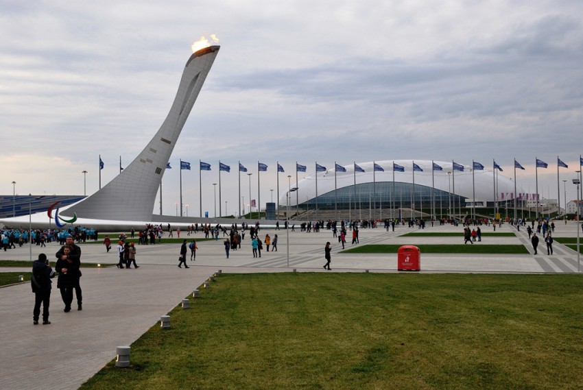 Погода в Олимпийском парке в этот день стояла мрачная, но дождя не было, до церемонии закрытия успел посетить экспозицию регионов России и сделать несколько прощальных фото из Олимпийского парка.