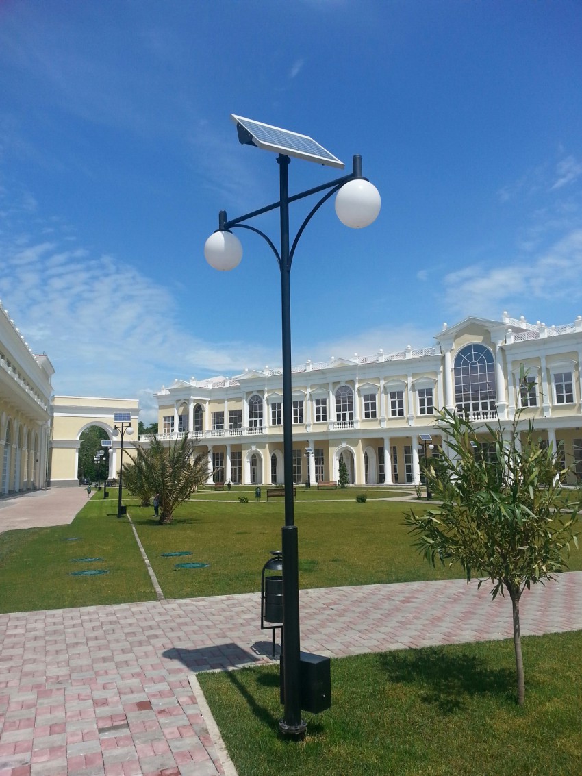 В сквере — аккумуляторные фонарики с подзарядкой на фотоэлементах. Круть неимоверная. Если, конечно, работают и именно от аккумуляторов :-)