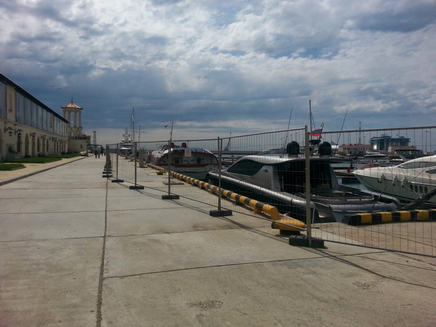 От экстерьера здания морпорта у праздношатающегося срывает крышу. Эдакое сельпо из бутиков Луи Виттон и Армани, над которыми довлеет Боско и советский герб. Жирные красные буквы Боско на лепном фасаде морпорта — придумать мерзее по-моему нельзя.