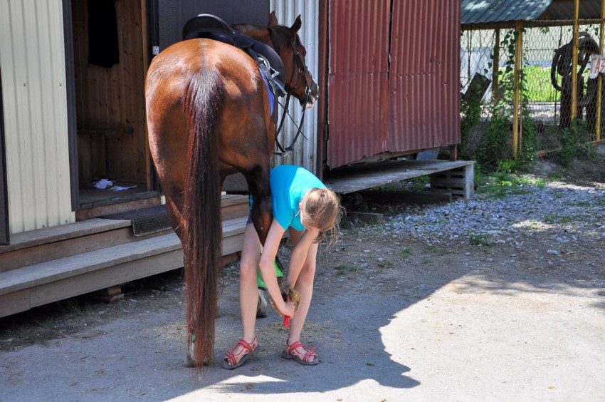 Любишь кататься, люби и саночки возить. К лошадям у юных спортсменов здесь трепетное отношение. Они их моют, расчесывают, чистят подковы и даже заплетают косички.