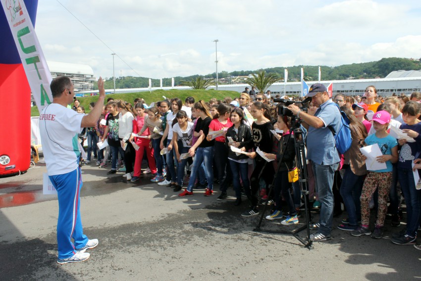 Воскресный день семнадцатого мая ознаменовался неожиданным праздником-утром установилась летняя сочинская погода+22С. Недалеко от главной входной группы помещений Олимпийского парка вместе с организаторами три группы поддержки пока подготовили место старта соревнований за ними из кружков школ, детских спортивных школ города, центра детского и юношеского туризма собрались все участники мероприятия.