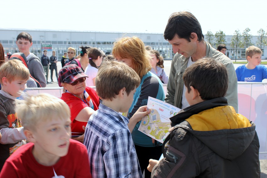 Подходило время старта, по условиям соревнований очередную группу детей в 150 человек запуская в предстартовую зону, судьи из Сочинского Туристического Клуба ставят специальную отметку на карту каждого участника, подтверждающую выход спортсмена на старт.