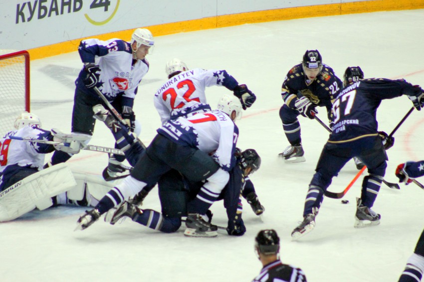 Пытаясь спасти контратаку торпедовец Максим Кондратьев от синий линии сильным броском пробил в ворота, закрытого полевыми игроками вратаря Барулина. На тридцать второй минуте матча гости вышли вперёд забив случайный гол. Хотя казалось что всё же была подставлена клюшка, шайбу защитали. Болельщиков ХК«Торпедо», пытавшихся поддержать свою команду скандированиями, сразу освистали. Хоккейную команду «Сочи» забитая шайба не смутила, как настоящие леопарды сочинцы прибавив скорости ринулись в драку и взяли верх в игре.