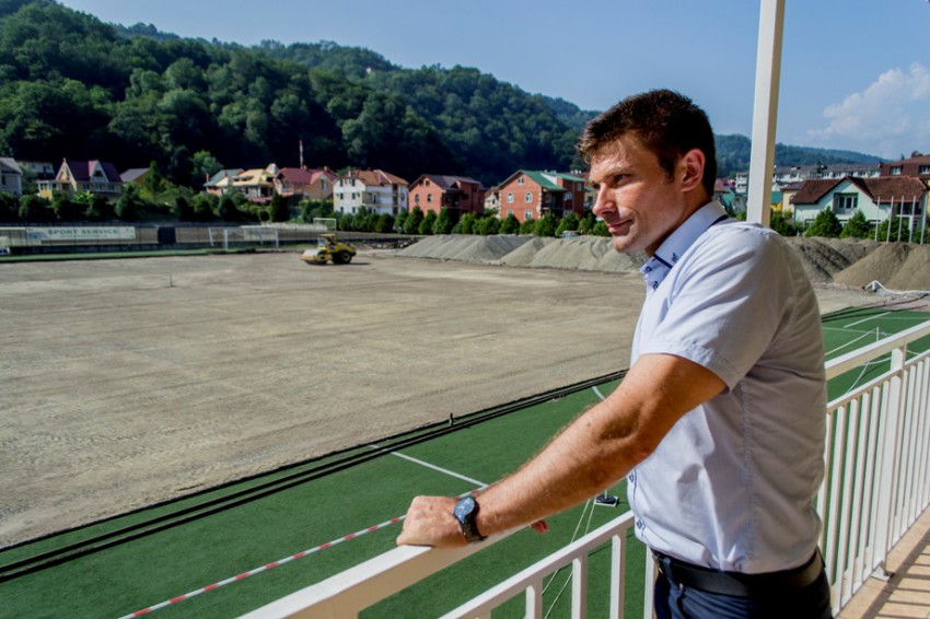 Руководитель Центра подготовки национальных сборных команд по футболу “Спутник-Спорт” Юрий Марущак на площадке с раннего утра и до позднего вечера. Беседуем прямо на «рабочем месте»: