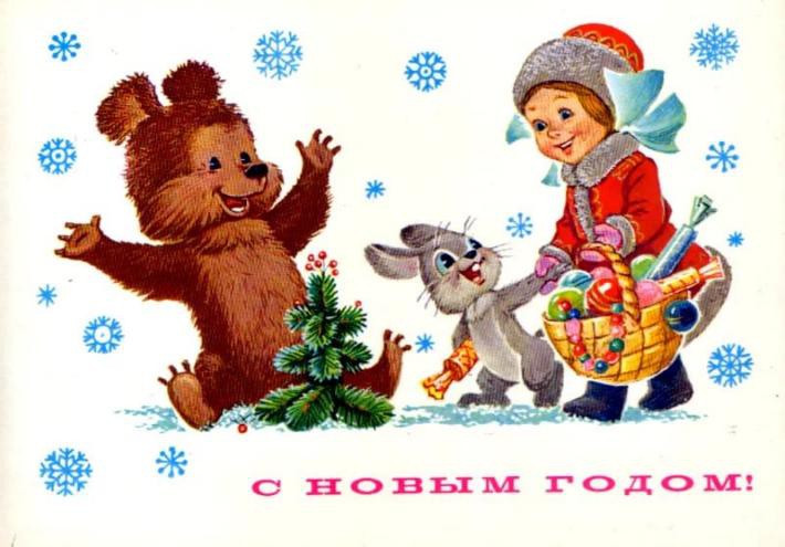 Новый год у нас принято праздновать две недели — по 14 января, когда справляется непонятный никому в мире Старый Новый год. Однако праздничные открытки были в ходу и в иные времена года, их дарили, посылали друг другу как особый сувенир, создавались коллекции и клубы филокартистов. Такие были и в Сочи в разные времена, раньше их было можно встретить по выходным в парковых зонах. Теперь репродукции с таких открыток помещаются даже на стенах в некоторых кафе — что поделаешь: ностальгия… Вот, к примеру, очень популярная новогодняя: