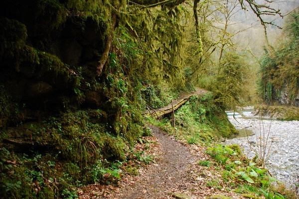 Впереди лесная дорожка с небольшими лужами, вокруг зеленые деревья… родниковая водичка по склонам слева и неторопливая Сочинка внизу справа…