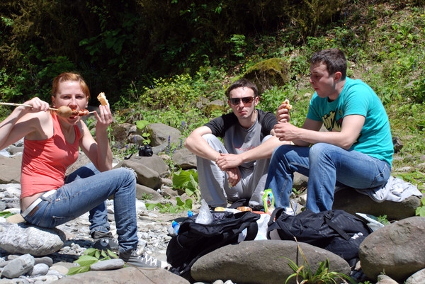 Больше половины уехало примерно через минут 40 после того, как мы дошли до слияния… кто-то поехал по горам в Дагомыс, кто-то в город… 12 человек осталось ещё отдыхать у костра.