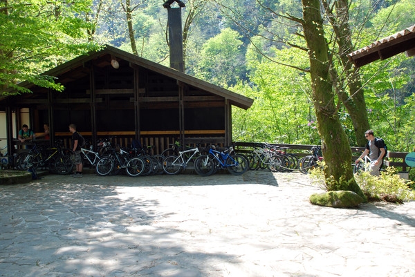 У беседок большинство из нас пристегнуло велики, а некоторым пришлось оставлять просто так… хотя вверху остался один парень понаблюдать за вещами.