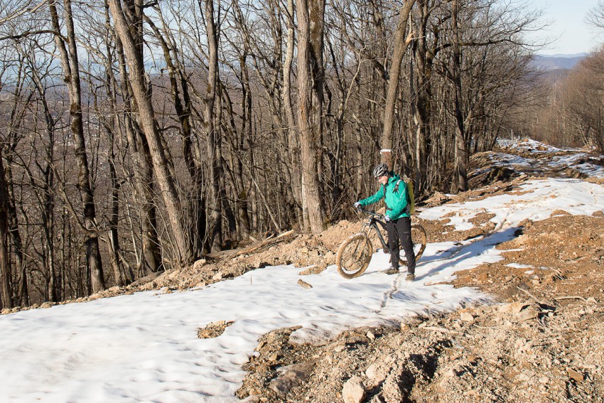 Сделав несколько фотографий городского пейзажа, поехали дальше по хребту. Здесь уже было почище, и езда по подмороженной земле и снегу доставляла удовольствие.