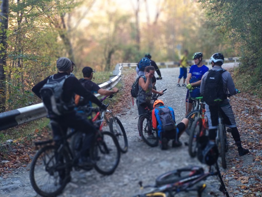 В Дагомысе заходит девушка, которую не ожидал увидеть, поскольку собиралась в пеший поход и не плюсовалась. В Лоо подсаживается ещё один наш товарищ. Уже на выходе в Головинке из последнего вагона появилась ещё одна участница. В итоге на этот раз нас дюжина любителей велоприключений.