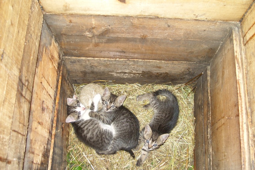 при виде такого чуда я не смогла сдержаться, что бы не погладить эти пушистые, мурчащие комочки.