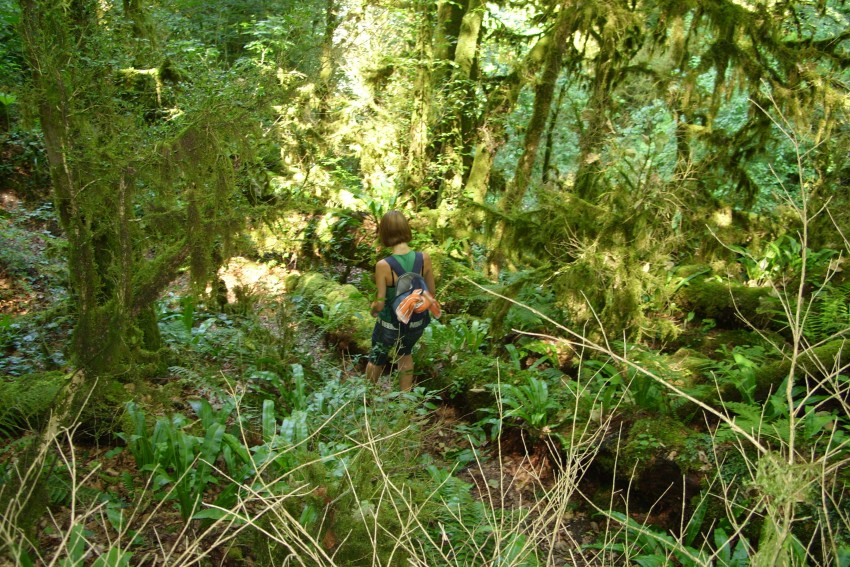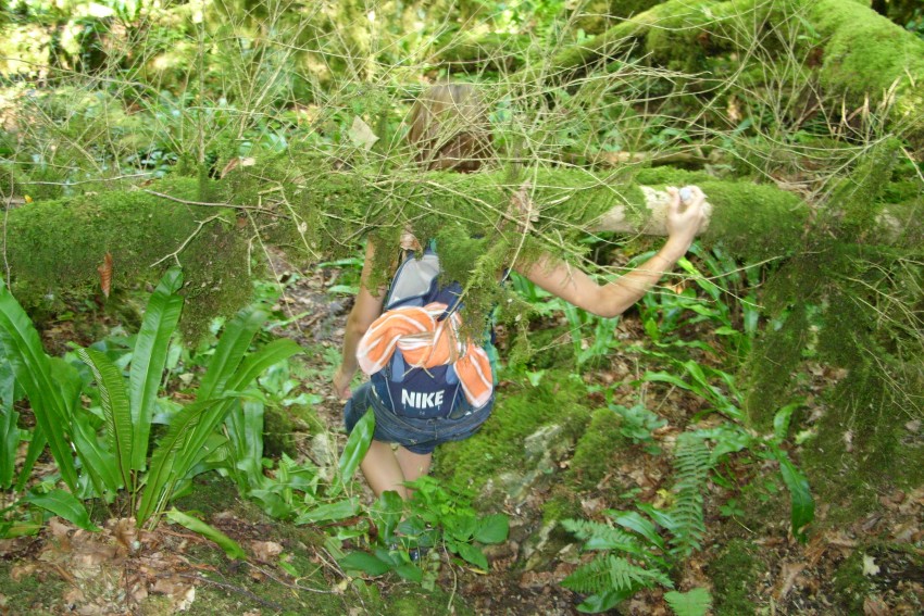 а речка разнообразила наш поход всевозможными препятствиями в виде больших валунов заросших мхом а так же завалами из бревен