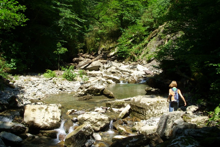 Однако на этом наше путешествие не закончилось, желание искупаться и освежиться в прохладной горной реке, снова привело нас в движение по прекрасной лесной тропинке вдоль самшита, папартаников и разнообразной листвы наполняющей кавказский лес.