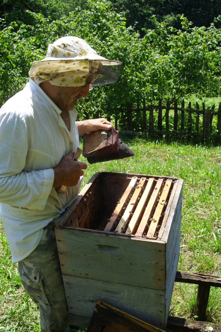 Наблюдать пасечника за работой оказалось весьма любопытно, удивление вызывал тот факт, что работал он без перчаток.