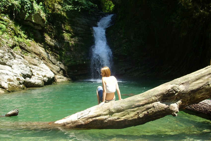 итогом нашего приключение «туда» стал прекрасный самшитовый водопад с прозрачной прохладной водой