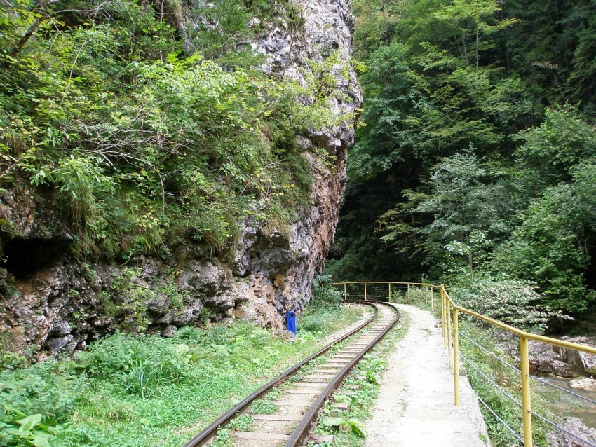 В ущелье есть пещеры и водопады, к сожалению топик и так перегружен и я не могу разместить здесь все фотографии.Самым интересным местом здесь считается Гуамское ущелье. В 30-х годах прошлого века в каньоне Гуамского ущелья была пробита узкоколейная железная дорога, с помощью которой осуществлялась связь с внешним миром. Дорога построена заключенными в годы первых «Сталинских» пятилеток и тянулась до Апшеронска, использовалась в основном для вывоза леса. Во времена перестройки она была разрушена селевыми потоками.