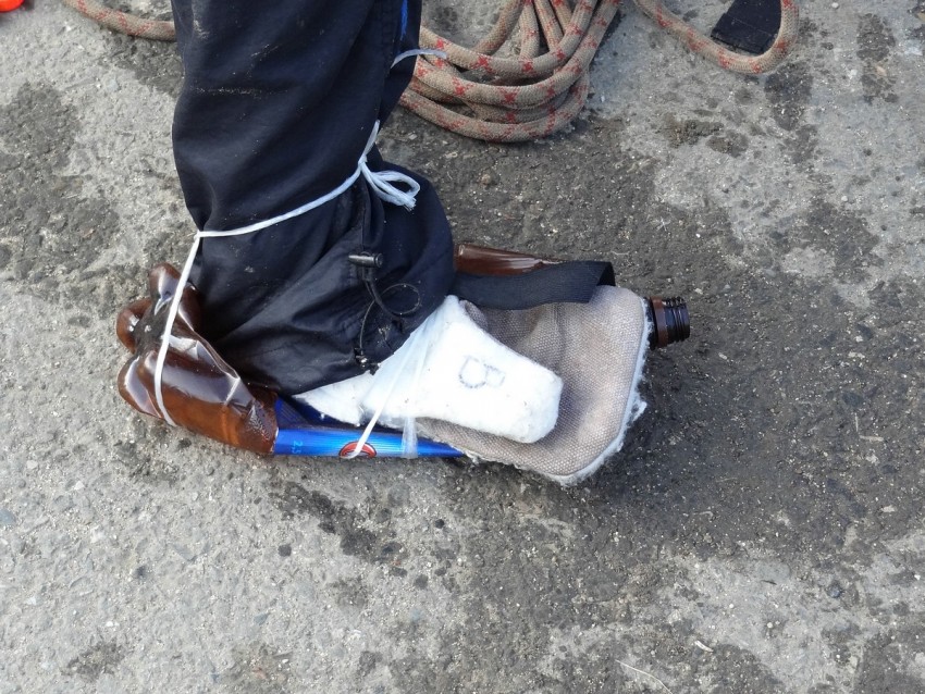 После этого обувь участников условно пришла в негодность и необходимо было найти ей замену в полевых условиях. Выручили стоящие неподалеку полные мусорные баки :)