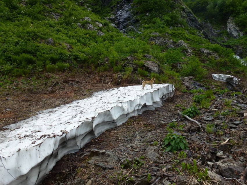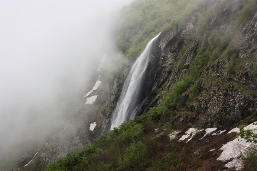 снега да… там и 3 и 6 и 9… метров может быть, это так сказать природное место естественного сброса \ схода лавин… и после ступени водопада они «залеживаются» частично… и накапливаются… ээээ я еще зимой там ЛЕДОПАД, сосулька, айс айс бэби) надо зимой сходить, только понять когда не лавиноопасно…