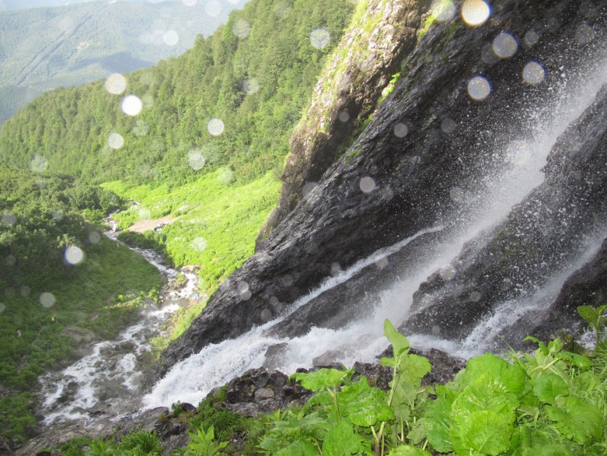 хомосапиенсы все тоже на положительной волне, все потянулись к прохладе горы, к самому водопаду подышать, искупаться, набраться сил