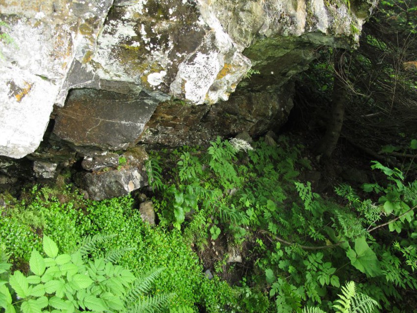 поднимаясь к точке падения основных струй водопада — справа, испили родниковой воды из под скалы