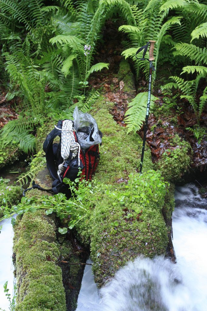 с мыслями о живительной прохладе водопада впереди, входим в лес, до первого ручья вполне понятный протоптанный путь, забираем правее выше к дороге что с Карусели на водопад + 41след…
