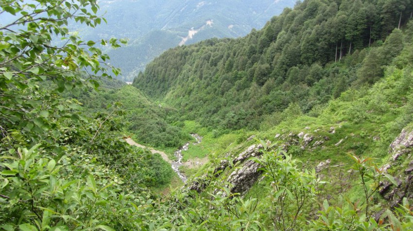 как шли: раньше всё начиналось от этого моста — что у слияния рек Мзымта и Лаура неБуш.