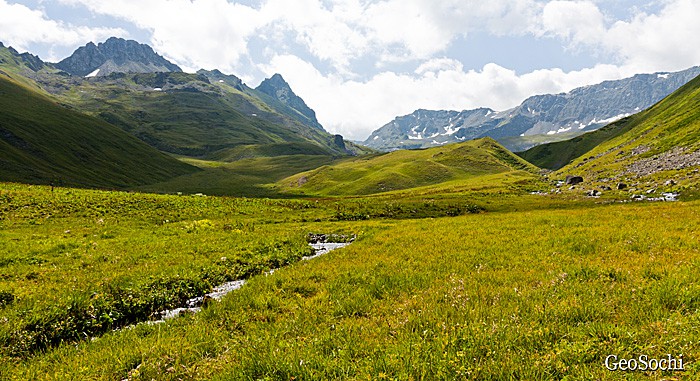 со склонов отрогов горы Речепсты стекают говорливые ручьи.