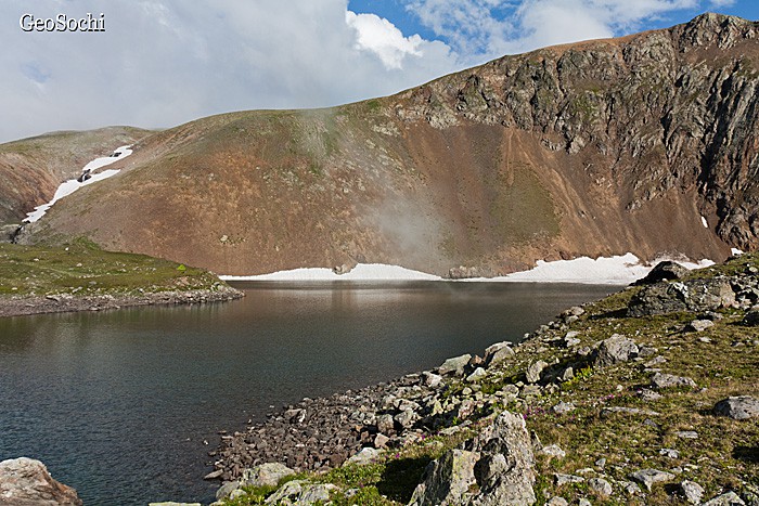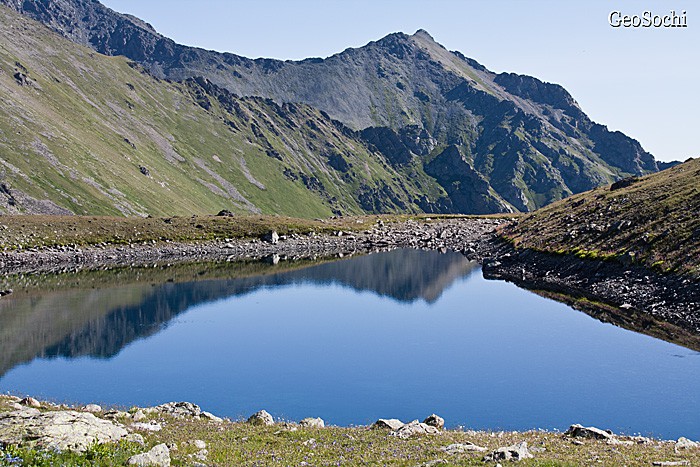 По пути на перевал заглядываем на соседнее озеро, которое поменьше.