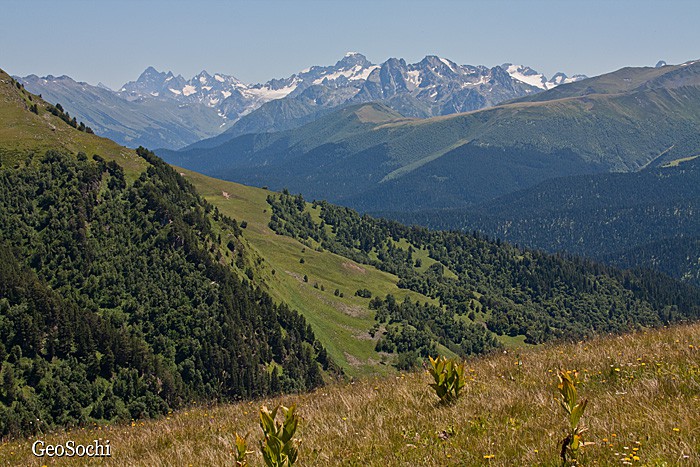 Продолжение панорамы с перевала Речепста на юг и юго-запад от Пшиша до Агепсты (кликните фото для увеличения).