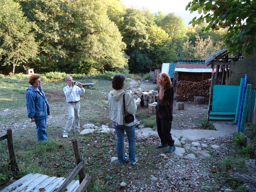 Целью этой поездки, руководителем которой была ученый секретарь СО РГО Ренева М. были осмотр дороги, водопадов, поиски очень редкого растения — эндемика колокольчика мзымтела. Единственное место его произрастания — ущелье Ах-цу. И вот задача была проверить скальный участок дороги в Аибгу на предмет нахождения здесь этого растения или его отсутствия.
