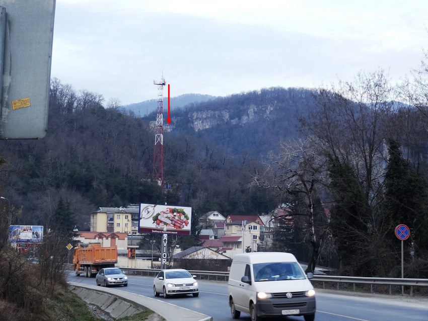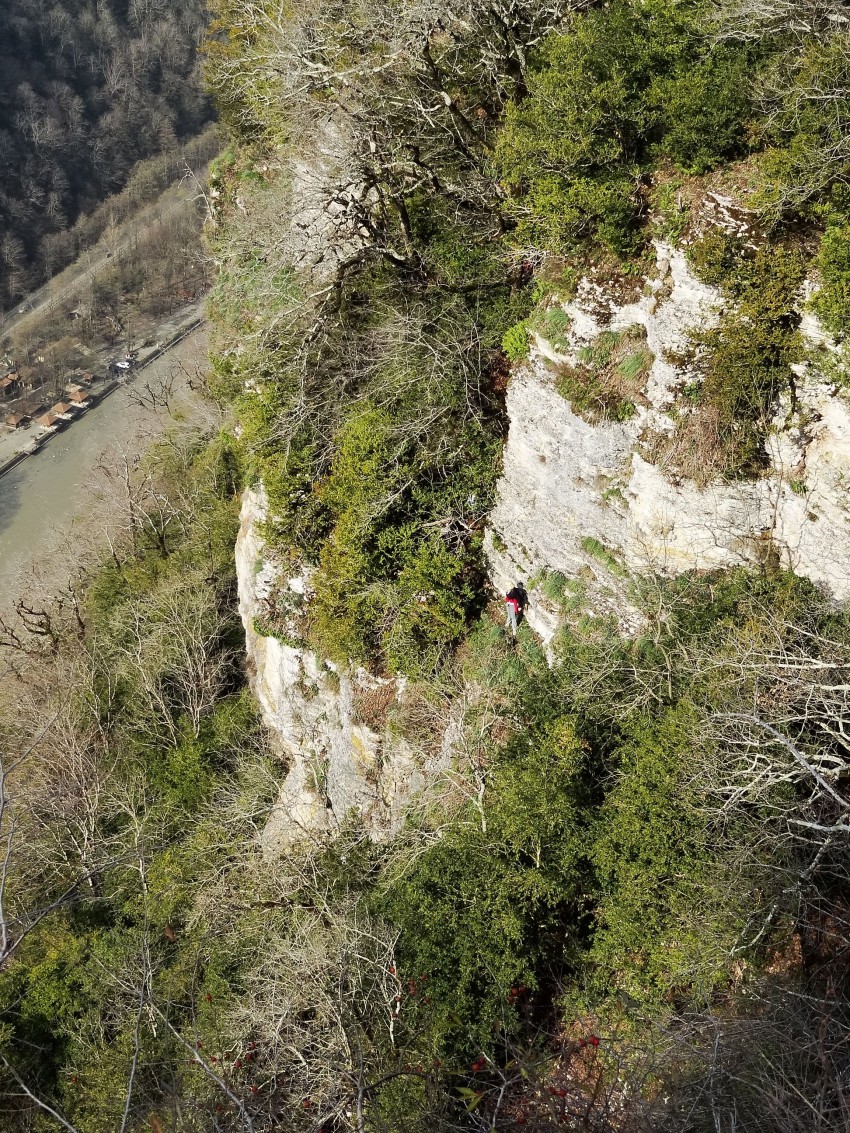 на скалу вверх по течению на левой стороне Мзымты.